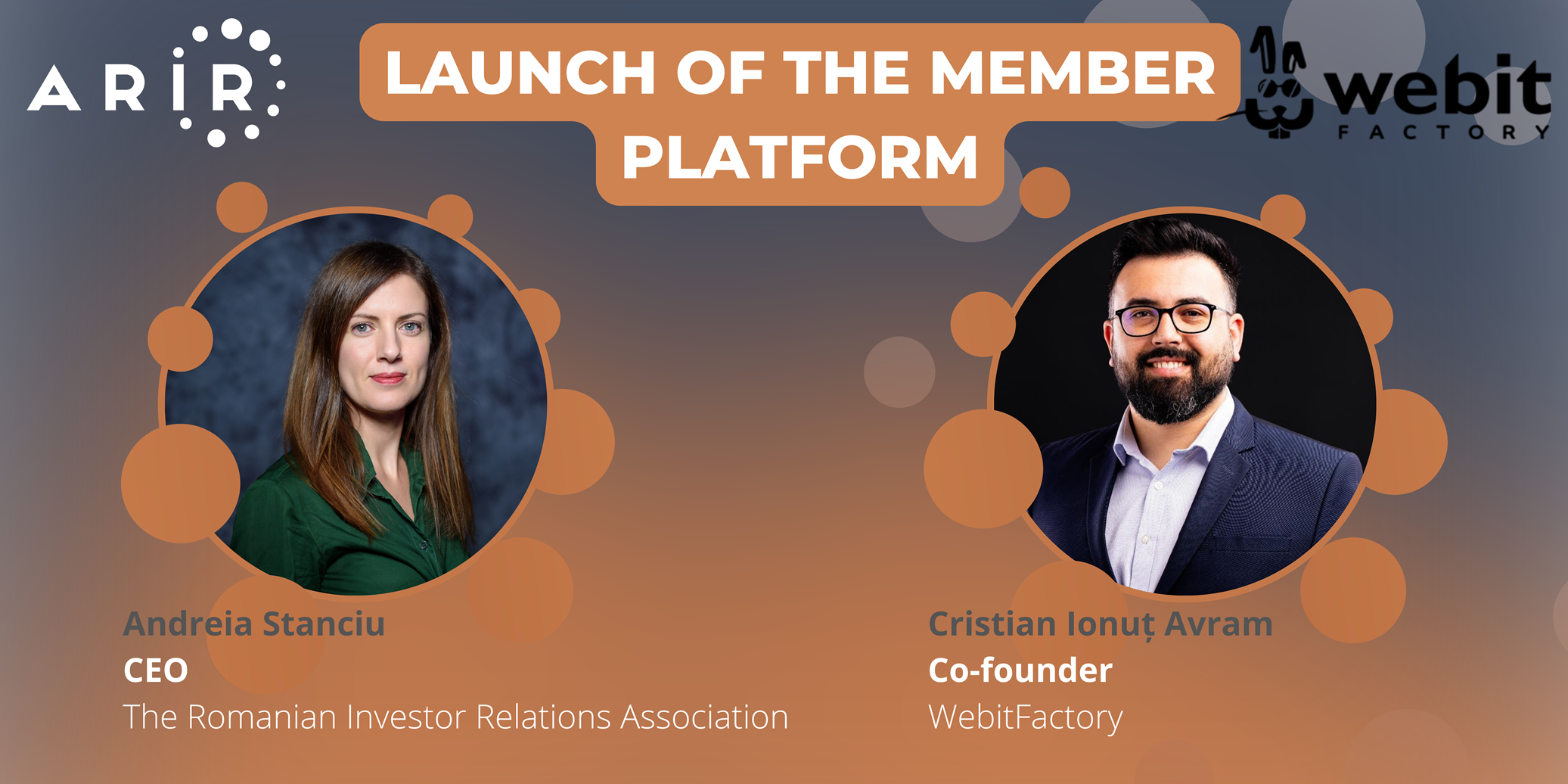 Bucharest, April 15, 2026 – The Romanian Association for Investor Relations (ARIR), the promoter of the Investor Relations (IR) concept in Romania, announces the launch of a new platform for collaboration and sharing of the association’s resources, dedicated exclusively to members. This digital ecosystem is designed to become one of the central pillars of the IR community, facilitating access to strategic resources and the preservation of institutional memory. This project was implemented by WebitFactory, a technology company, which developed the platform using a series of modern technologies, based on artificial intelligence solutions, natural language processing and secure cloud architectures.